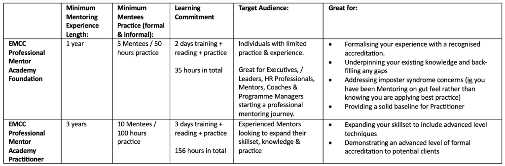 This is the first of three courses within our Professional Mentoring Programme, leading onto Practitioner level, and Senior Practitioner level. Whilst many individuals receive some mentoring training during their working lives and may have plenty of mentoring experience, it’s rare that the training is sufficient to meet any standards for formal accreditation.